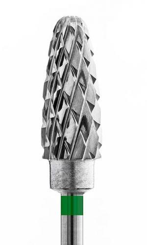 ТВЕРДОСПЛАВНА НАСАДКА НА ФРЕЗЕР . ПРИЗНАЧЕНА ДЛЯ ВИДАЛЕННЯ ЗАЙВОГО ШАРУ ГЕЛЮ (АКРИЛУ),ДЛЯ ПЕДИКЮРУ ДУЖЕ ГРУБИХ П'ЯТ.РОЗМІР ГОЛОВКИ 14 ММ*7,5 ММ.ХРЕСТОПОДІБНА НАСІЧКА КРУПНА_ЗЕЛЕНИЙ ОБІДОК.